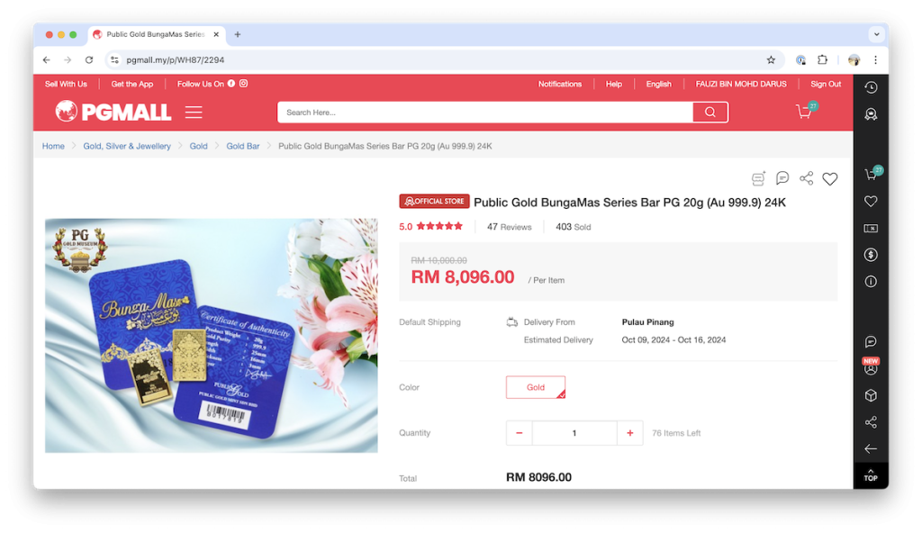 Ketika artikel ini ditulis, anda masih boleh dapatkan design gold bar yang lama di PG Mall. Masih ada 76 ketul gold bar 20 gram BungaMas design lama yang boleh anda dapatkan di sana.