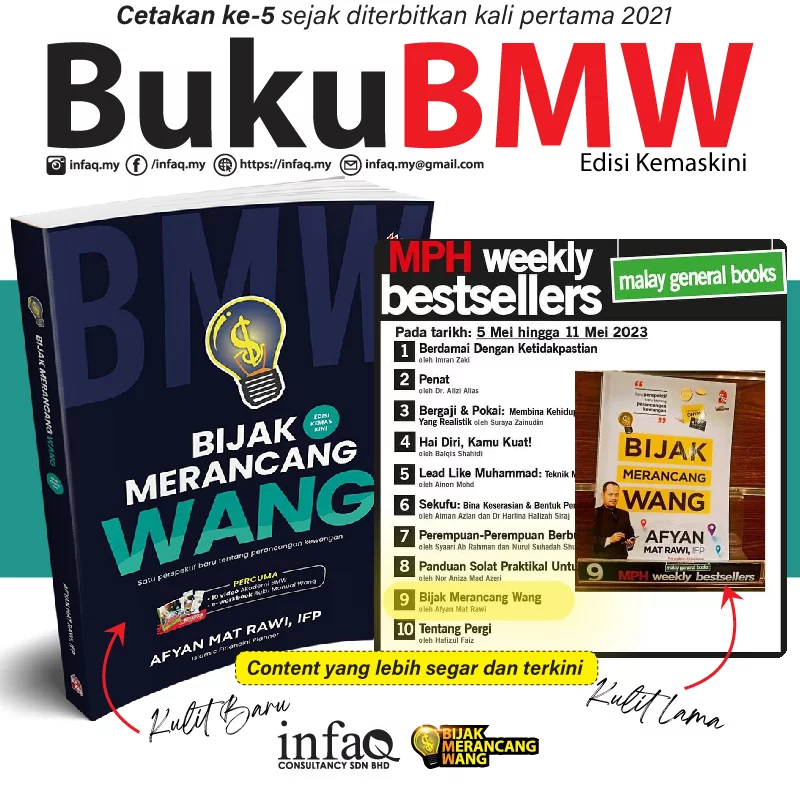 Tetapi sebelum itu, dapatkan buku Bijak Meracang Wang edisi kemaskini dengan harga promosi untuk anda dapat merancang kewangan dengan lebih baik pada tahun ini.