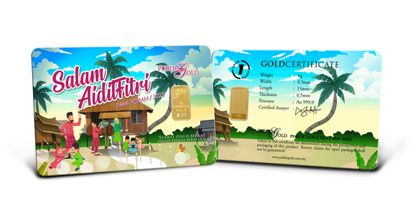 Setiap tahun, Public Gold akan keluarkan gold bar khas edisi Hari Raya Aidilfitri bagi meraikan kehangatan suasana Hari Raya bersama dengan pelanggan-pelanggan dan penyimpan emas Public Gold.